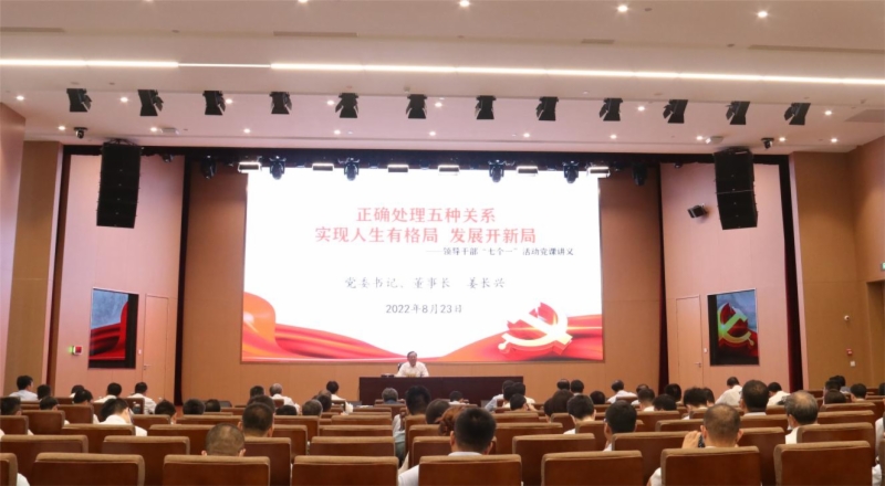 8月23日上午,按照集团党委关于领导干部“七个一”活动的安排,集团党委书记、董事长姜长兴同志以《正确处理五种关系 实现人生有格局 发展开新局》为题,为集团广大党员干部职工讲授专题党课。集团领导王基全、高燕、金海明、杨俊泉、窦玉硕出席。集团机关全体人员,各权属单位中层副职以上人员及办公室、党群工作部、纪委全体人员参加学习。