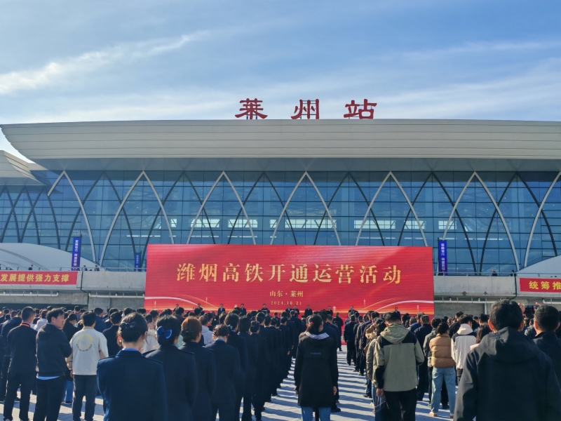10月21日,由山东铁投集团投资建设的潍烟高铁开通运营,山东高铁运营里程突破3000公里,达到3047公里,继续保持全国领先。当日上午,潍烟高铁开通运营活动在莱州站举行。山东省委常委、烟台市委书记江成出席活动,副省长宋军继、国铁集团安全总监兼安监局局长王保国出席活动并讲话。9点28分,首发列车正式发车。