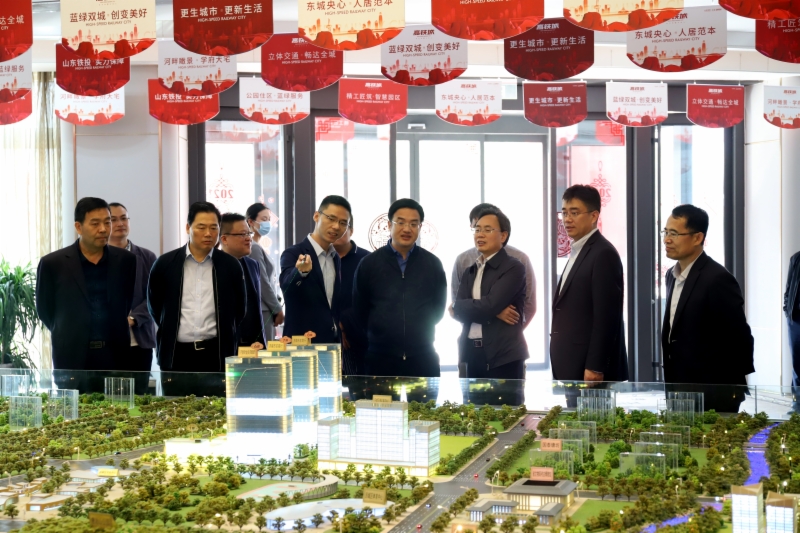 5月12日,集团党委委员、副总经理唐传营,党委委员、副总经理杨俊泉带队到综合开发公司调研,实地了解督查高铁产业园一期、二期项目建设进度和存在的困难,并在山东铁投大厦进行座谈。