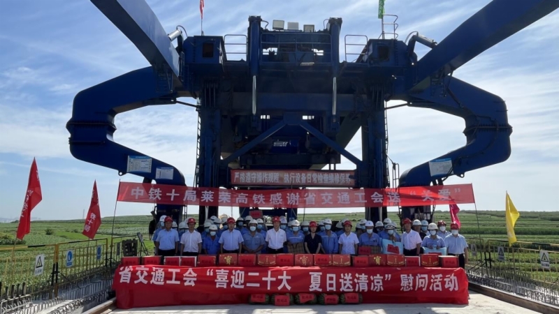 7月14日至15日,集团工会联合省交通工会来到潍烟、莱荣高铁建设一线,开展“喜迎二十大,夏日送清凉”慰问活动,并就省交通运输重点工程“勇创新、当先锋、比贡献”劳动竞赛开展情况进行调研。省交通工会主席牟艳红,集团党委副书记高燕、工会主席张庆星率队慰问。
