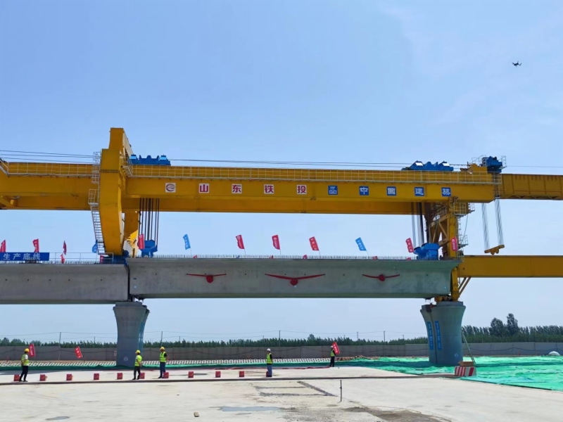 为确保首孔箱梁顺利架设,山东铁投集团济滨高铁公司与中建股份济滨高铁3标项目部围绕首榀箱梁制、运、架施工任务,提前规划、倒排工期,紧抓进场验收环节,协调各方力量,保证物资供应,有力保障施工效率和制梁进度。一个月内完成架桥机和运梁车组装、测试工作,确保架桥机设备性能状态。严控架梁施工方案,围绕箱梁吊装、运输、架设等关键工序,认真做好技术、安全交底和安全培训,确保架梁施工安全平稳推进。