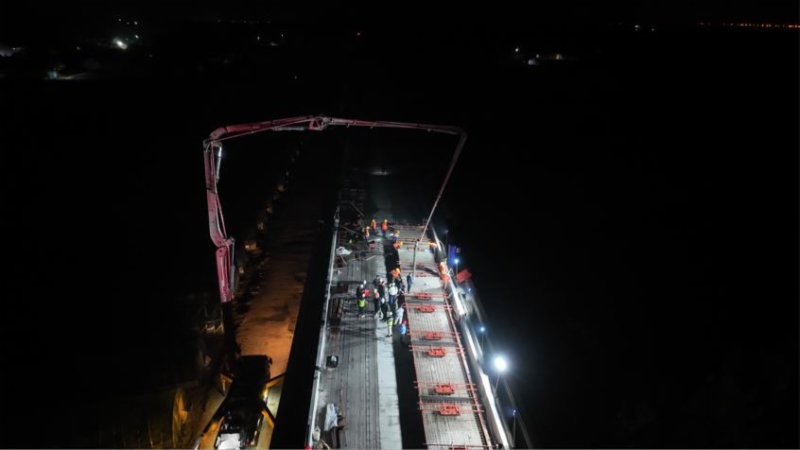 5月4日,济滨高铁首孔无砟轨道底座板在商惠滨2号特大桥第804孔梁面上顺利浇筑完成,标志着项目正式进入无砟轨道施工阶段。