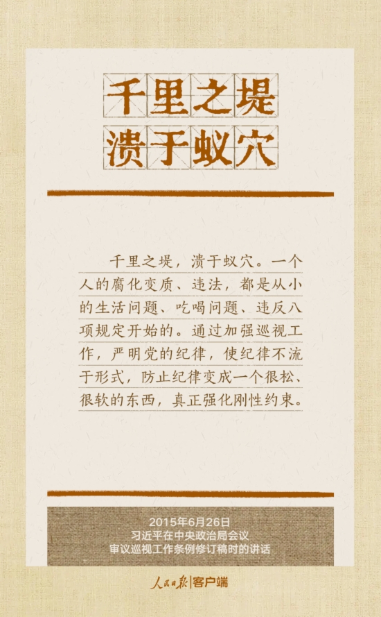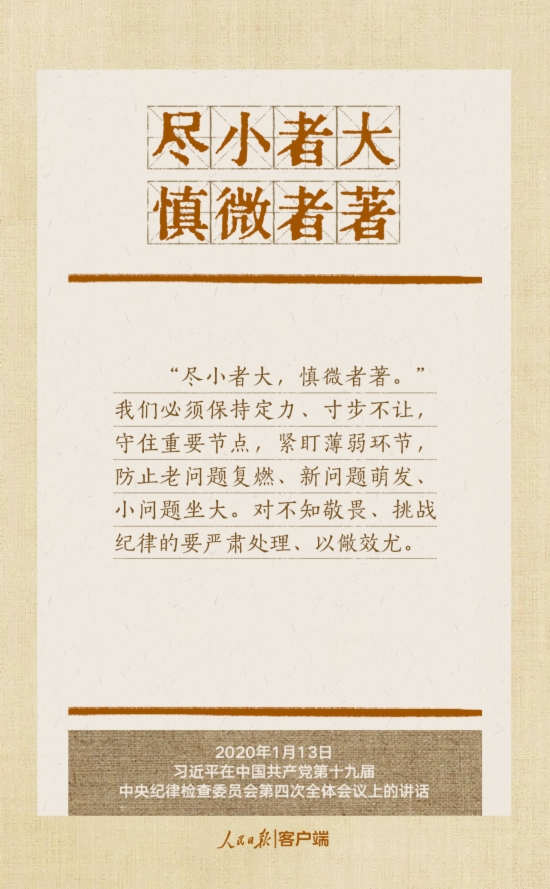 党的十八大以来,习近平总书记多次就抓好党的作风建设、贯彻落实中央八项规定精神发表重要讲话,作出重要批示,提出明确要求。“没有规矩,不成方圆”、“己不正,焉能正人”、“尽小者大,慎微者著”……总书记引用的这些古语耐人寻味。